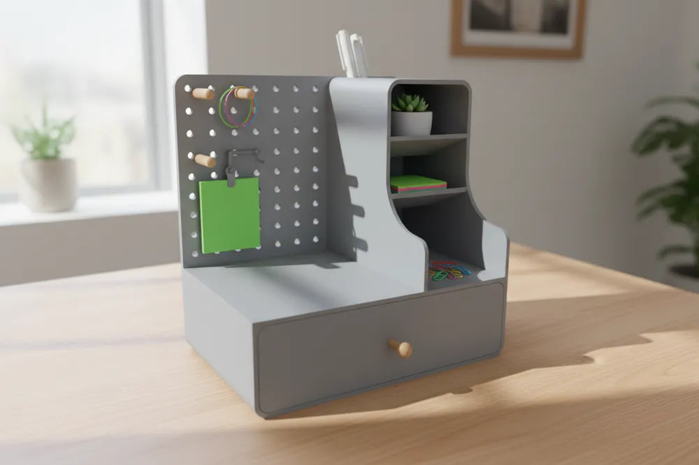 Of course, if you want to expand the usable space, the sides of the pen holder can also be designed as pegboards.